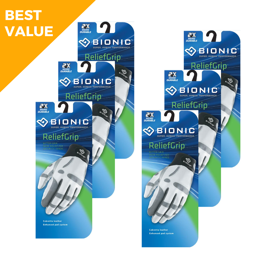 Bionic ReliefGrip Golf Gloves for Arthritic Hands are developed in conjunction with an orthopedic hand specialist. Featuring extra support and mild compression, our gloves help reduce pain and discomfort from swollen and sore joints, giving you a better grip. Don't let the pain of arthritis affect your game - play in comfort with Bionic. We understand how painful arthritis can be, especially when it stops you from the activities you love. That's why we worked closely with an orthopedic hand specialist to develop our ReliefGrip Golf Gloves for Arthritic Hands. Don't let arthritis slow you down - get back to doing what you love with Bionic ReliefGrip Gloves!