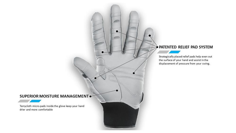 A better grip means better control over your game! With ReliefGrip™ golf gloves from Bionic Gloves, you'll enjoy a lighter, more relaxed grip throughout the game. Our web and motion zone innovations provide ventilation while promoting a more natural range of movement, and Lycra gussets eliminate uncomfortable bunching between the fingers.